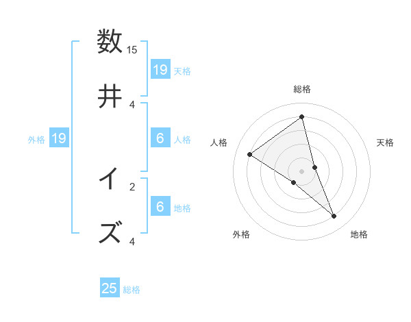 数井 イズさんの総格は25画の4点!