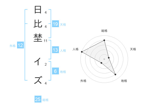 日比埜 イズさんを姓名の画数から五運を鑑定