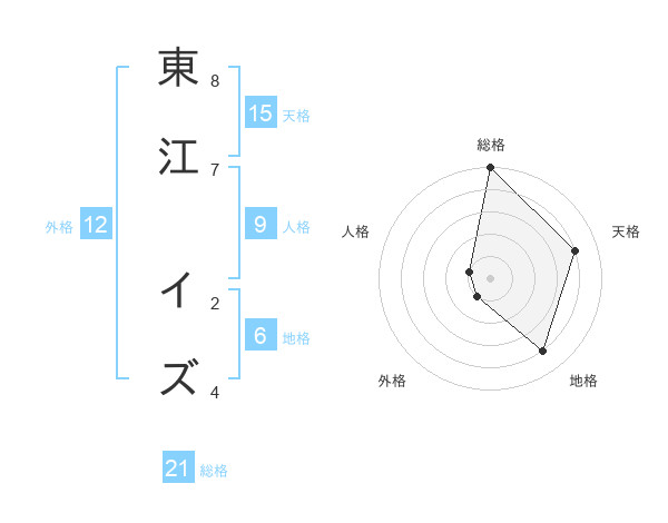 東江 イズさんの総格は21画の5点!