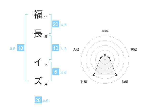 福長 イズさんの天格は22画の1点!