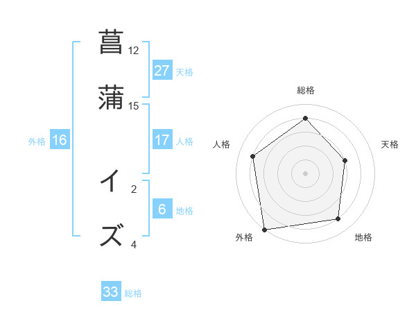 菖蒲 イズさんの外格は16画の5点!