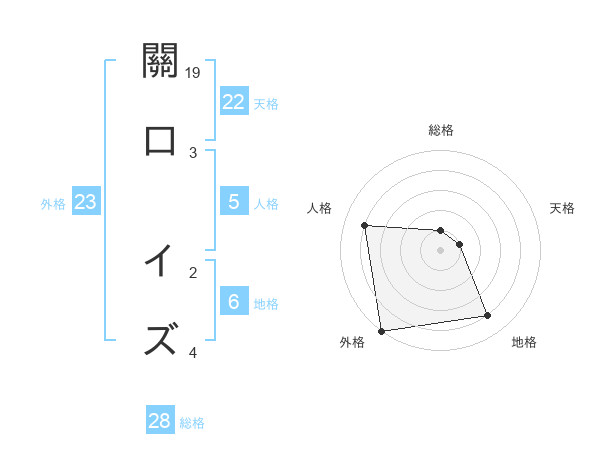 關口 イズさんの総格は28画の1点!