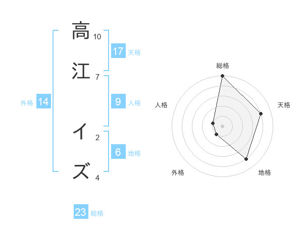 高江 イズさんの天格は17画の4点!