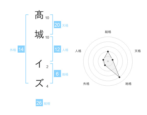 髙城 イズさんの総格は26画の2点!