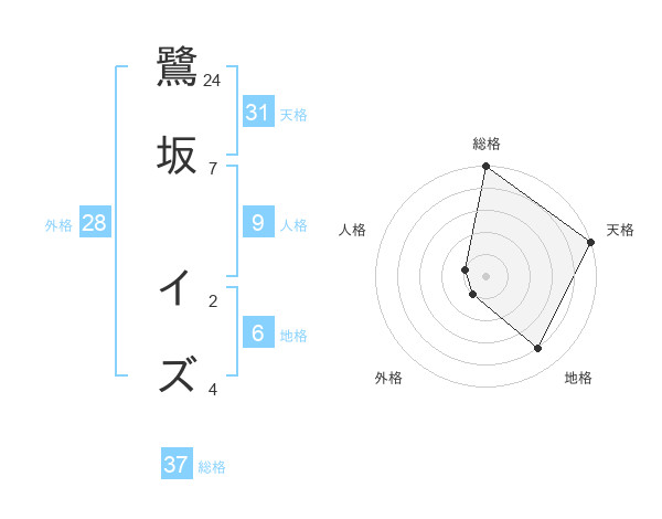 鷺坂 イズさんの総格は37画の5点!