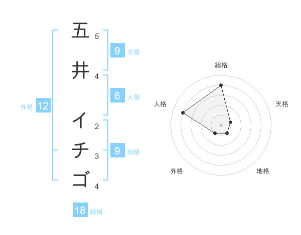五井 イチゴさんを姓名の画数から五運を鑑定