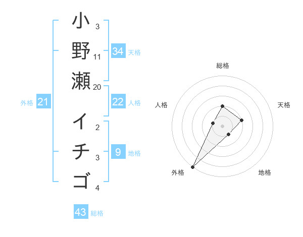 小野瀬 イチゴさんの総格は43画の2点!