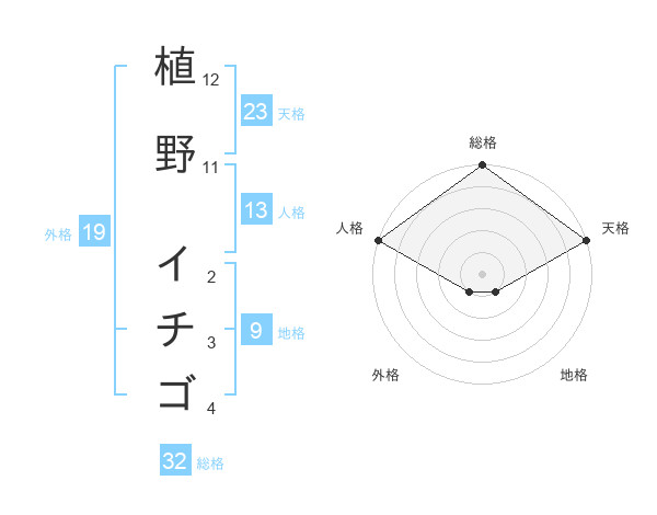 植野 イチゴさんの天格は23画の5点!
