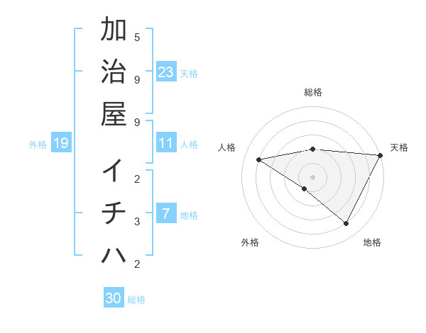 加治屋 イチハさんの天格は23画の5点