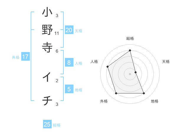 小野寺 イチさんを姓名の画数から五運を鑑定