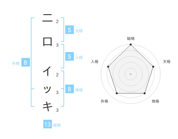 二口 イッキさんの総格は13画の5点!