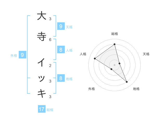 大寺 イッキさんを姓名の画数から五運を鑑定
