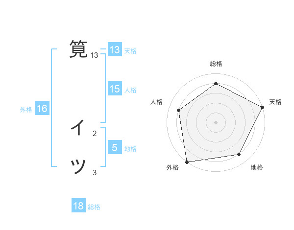 筧 イツさんの天格は13画の5点!