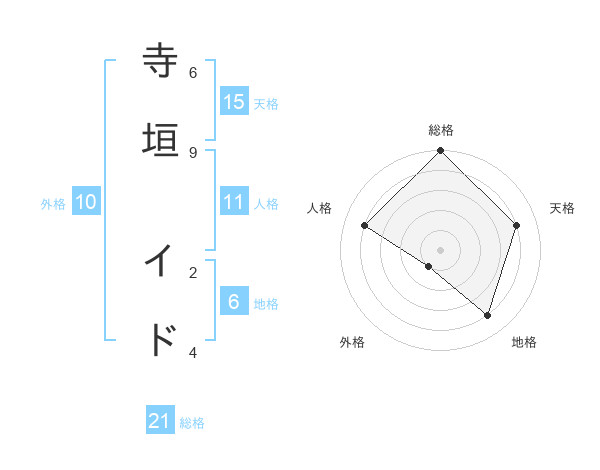 寺垣 イドさんを姓名の画数から五運を鑑定