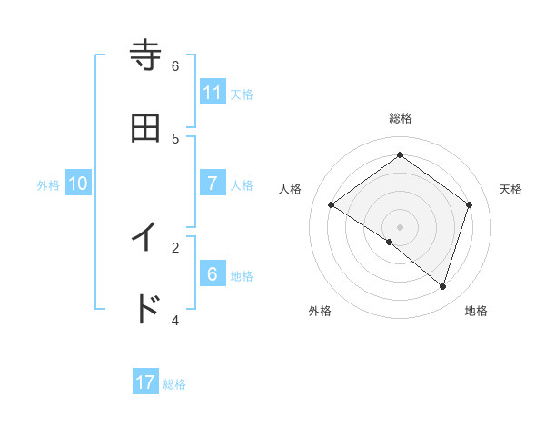 寺田 イドさんの総格は17画の4点!