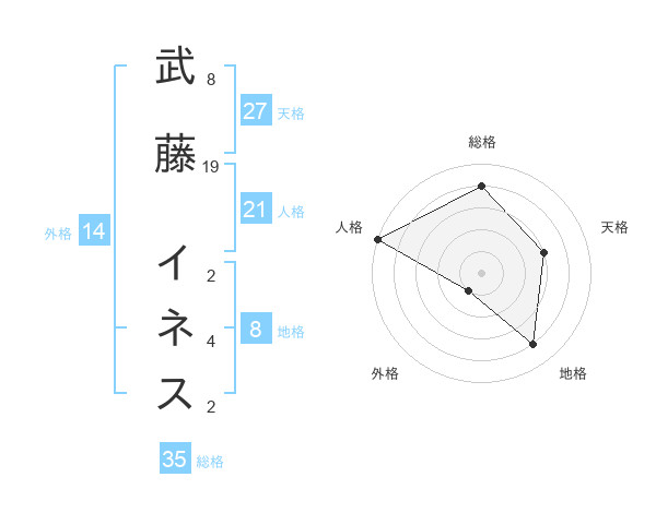 武藤 イネスさんの天格は27画の3点!