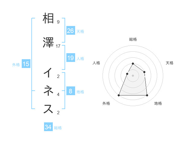 相澤 イネスさんを姓名の画数から五運を鑑定