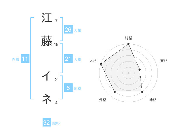 江藤 イネさんの総格は32画の5点!