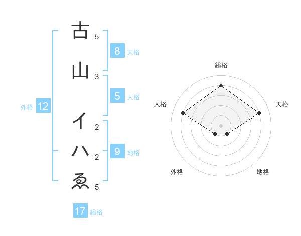 古山 イハゑさんを姓名の画数から五運を鑑定