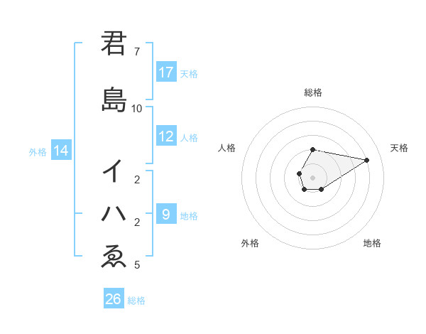 君島 イハゑさんを姓名の画数から五運を鑑定