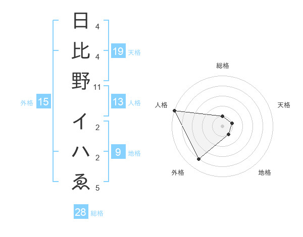 日比野 イハゑさんの総格は28画の1点!