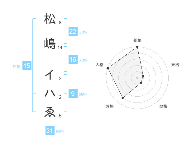 松嶋 イハゑさんの外格は15画の4点!
