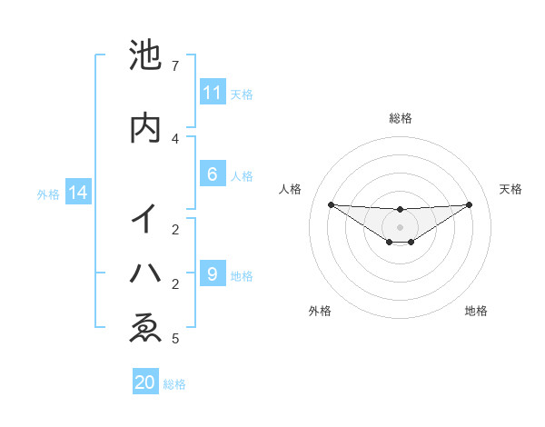 池内 イハゑさんの総格は20画の1点!