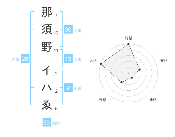 那須野 イハゑさんを姓名の画数から五運を鑑定