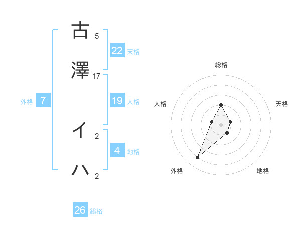 古澤 イハさんの外格は7画の4点!