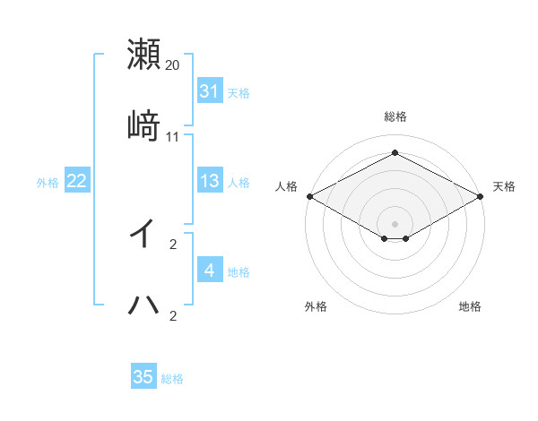瀬﨑 イハさんの総格は35画の4点!
