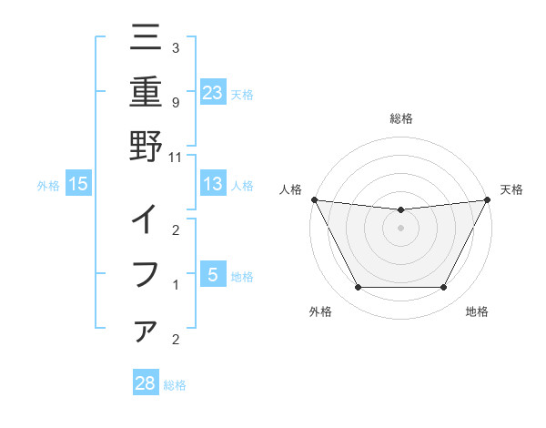 三重野 イファさんの天格は23画の5点!