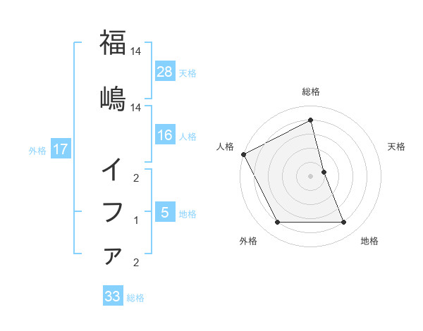 福嶋 イファさんの外格は17画の4点!