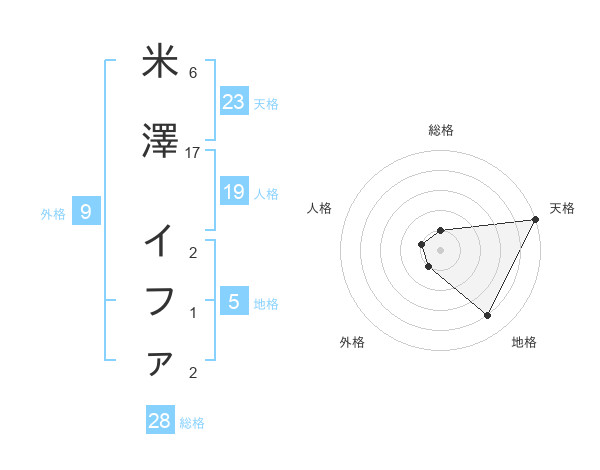 米澤 イファさんの総格は28画の1点!