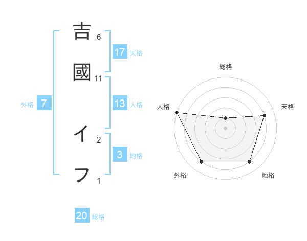 吉國 イフさんの天格は17画の4点!