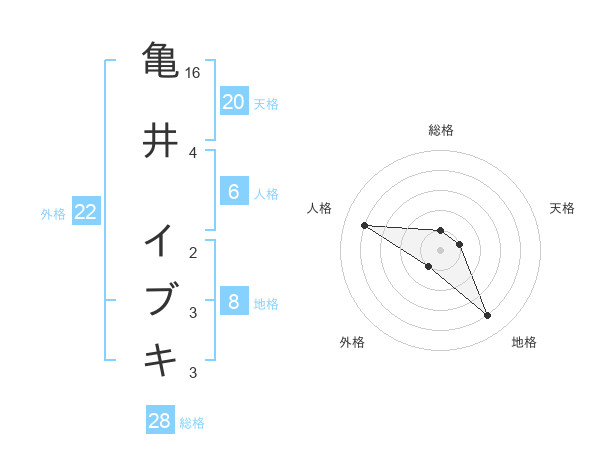 亀井 イブキさんを姓名の画数から五運を鑑定