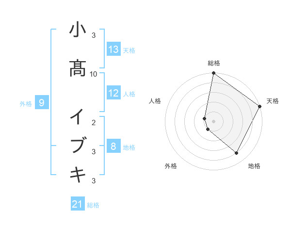 小髙 イブキさんを姓名の画数から五運を鑑定