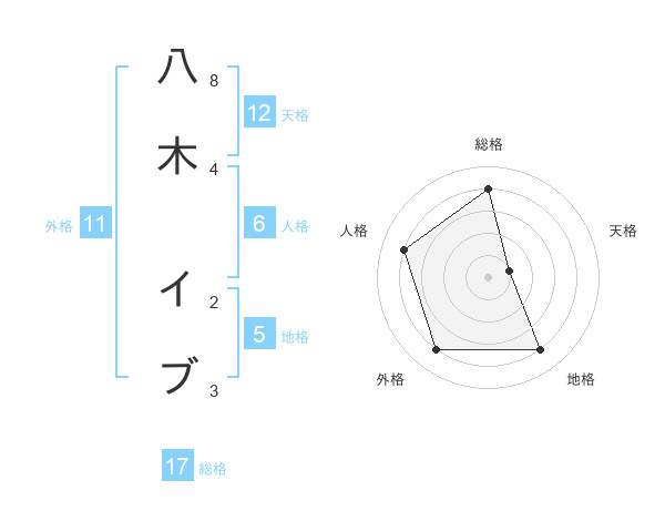 八木 イブさんの総格は17画の4点!
