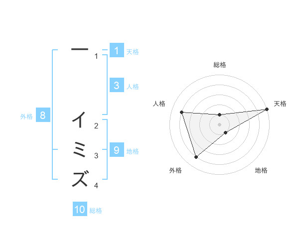 一 イミズさんの総格は10画の1点!