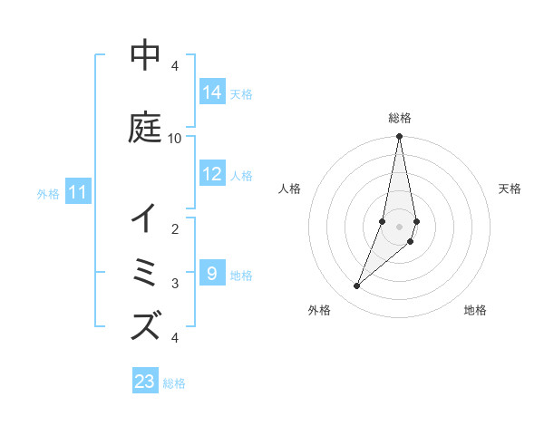 中庭 イミズさんを姓名の画数から五運を鑑定