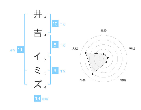井吉 イミズさんを姓名の画数から五運を鑑定