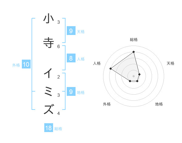 小寺 イミズさんの総格は18画の4点!