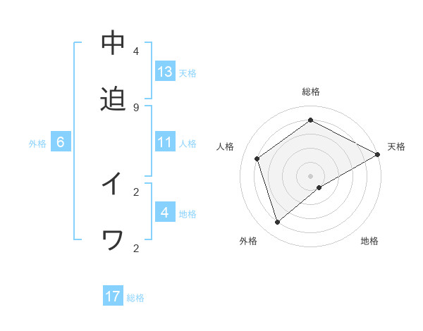 中迫 イワさんの総格は17画の4点!