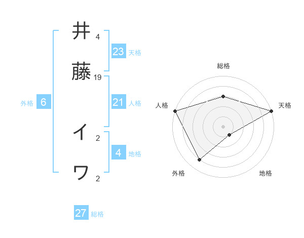井藤 イワさんの総格は27画の3点!