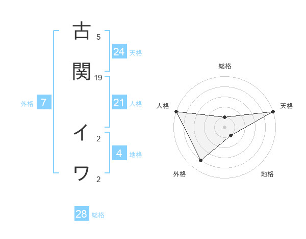 古関 イワさんの天格は24画の5点!