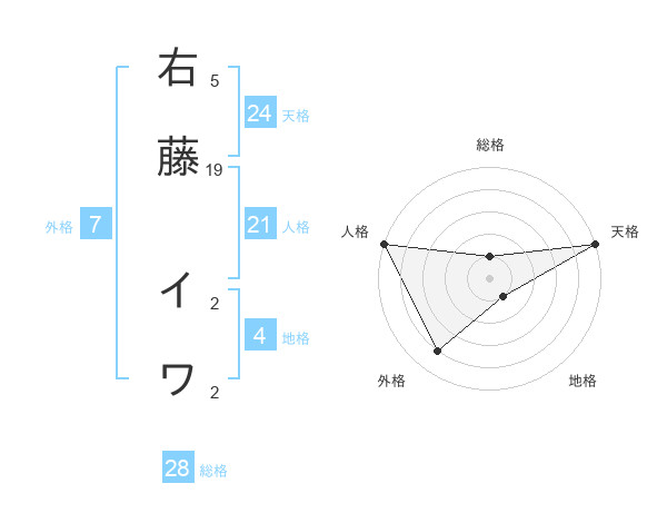 右藤 イワさんの人格は21画の5点!