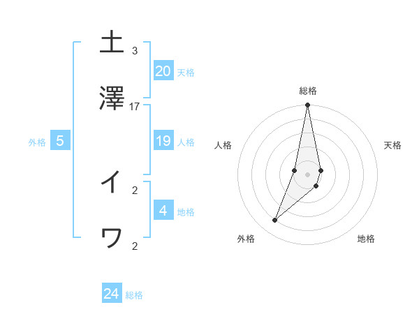 土澤 イワさんの総格は24画の5点!