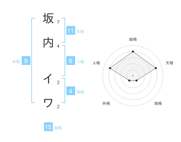 坂内 イワさんの総格は15画の4点!