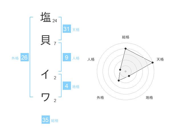 塩貝 イワさんの天格は31画の5点!
