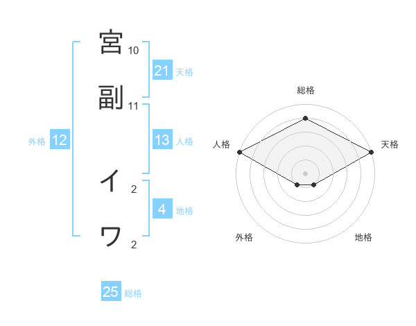 宮副 イワさんの天格は21画の5点!