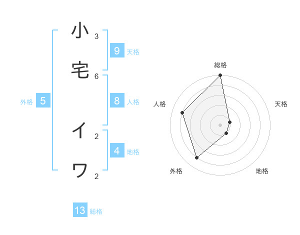 小宅 イワさんの総格は13画の5点!